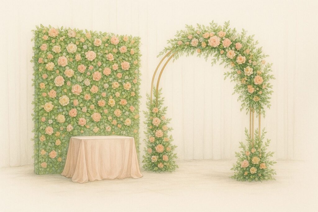 A well-designed floral backdrop does more than just look pretty — it sets the tone. Whether it’s behind the altar, framing your sweetheart table, or creating a photo-worthy moment for guests, flower walls and arches add natural beauty and a touch of luxury to your space.