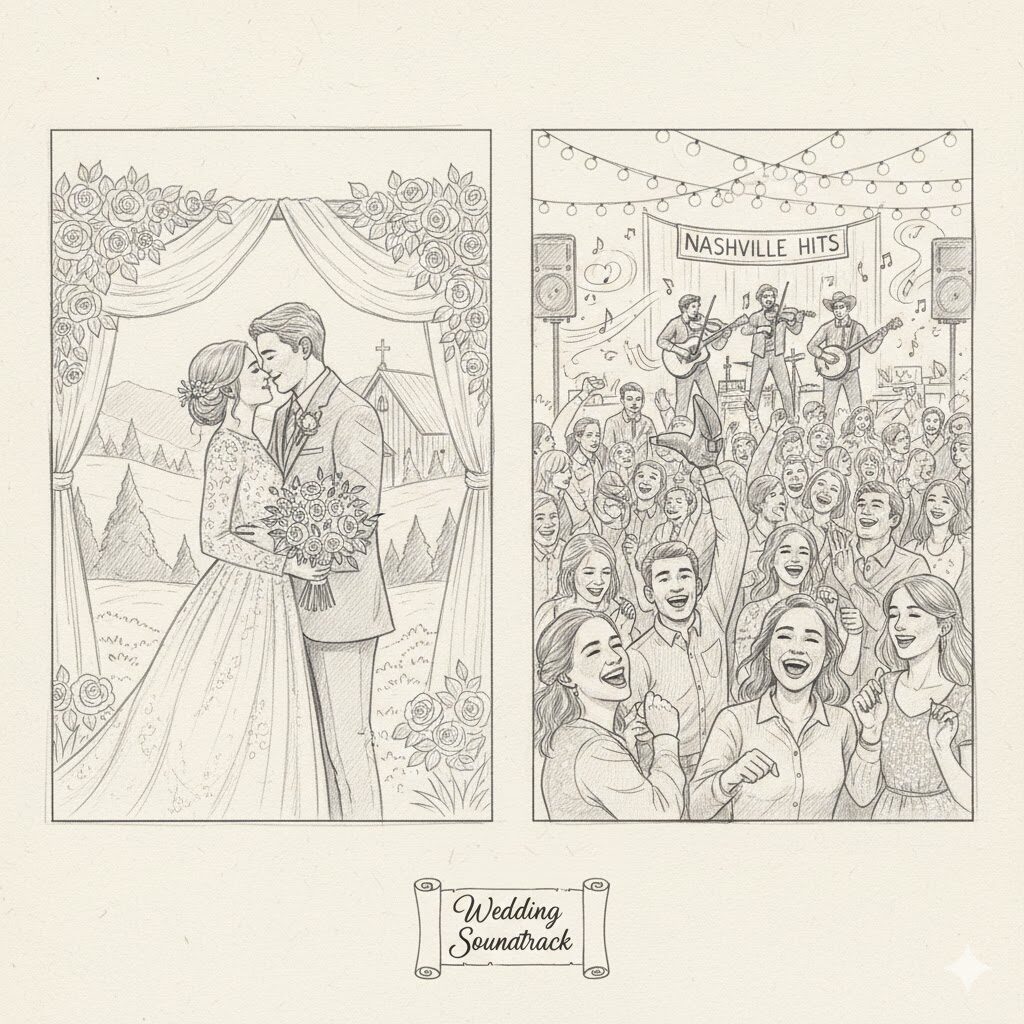 Here is a curated list of suggestions for your Ceremony, Cocktail Hour, and Reception, blending classic country romance with upbeat party energy and the unique Nashville sound of bluegrass and jazz.